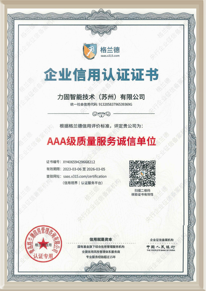 我司現已獲得GB/T19001-2016/ISO 9001:2015質量體系認證及江蘇省高新技術企業認證,“力固”品牌聲譽日隆,有口皆碑。